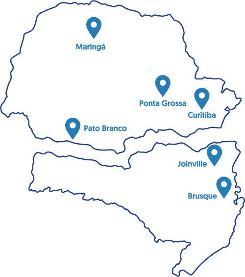 Atendemos empresas em todo o Brasil, com unidades no Paraná e Santa Catarina, levando soluções inteligentes em automação industrial até você. Com equipes qualificadas, estoque local e suporte técnico especializado.